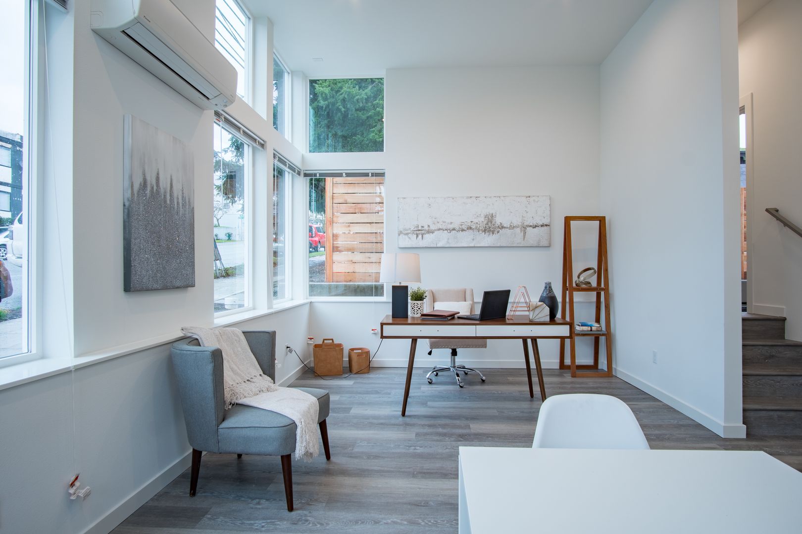 Enjoy four full floors of contemporary living, including a flexible ground-level live/work space—ideal for remote work, creative pursuits, or guest accommodations. The top-level rooftop deck delivers sweeping, unobstructed views of the downtown Seattle skyline—your private oasis above the city.