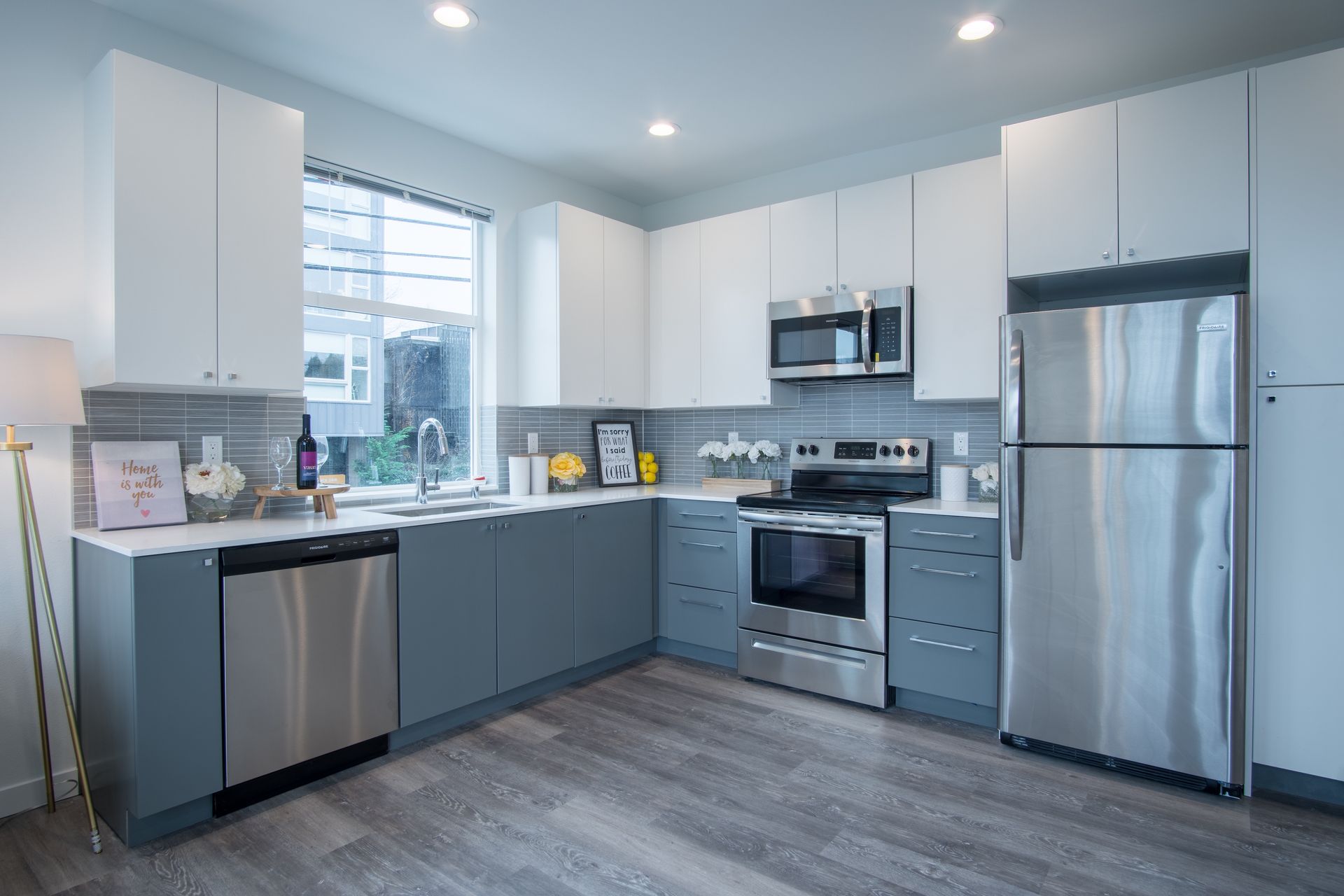 -Stainless steel appliances and quartz countertops